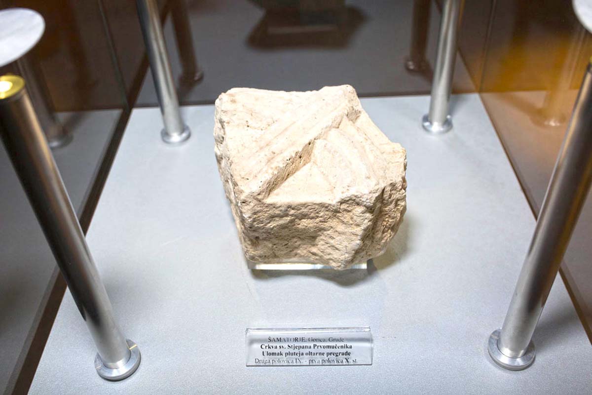 Crkvene su građevine podizane od vremena pokrštavanja današnjih žitelja Hercegovine, nerijetko na temeljima starokršćanskih crkava. Nama je po imenu ili neznatnim ostacima poznat manji broj takvih spomenika. Ranosrednjovjekovne crkve po vremenu pripadaju razdoblju od IX. - XII. st., a po umjetničkom stilu predromanici i ranoj romanici dok one kasnije imaju obilježja romanike i gotike. Raspoloživi materijal sastoji se od jednog epigrafskog spomenika te dijelova arhitektonske ukrasne plastike. Svi su ti predmeti ovdje izloženi.